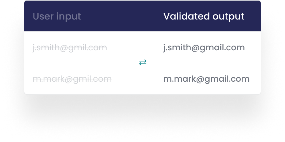 Our email validation leverages authoritative, regularly updated data sources like the Royal Mail Postcode Address File (PAF), ensuring accuracy by cross-checking against one of the UK’s most comprehensive and current delivery point databases.
